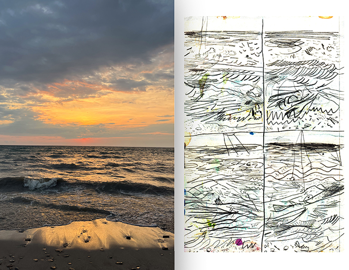 52-page zine, drawing and photos about Lake Erie. work by Ginger Craghead-Way, Annie Way and Warren Craghead